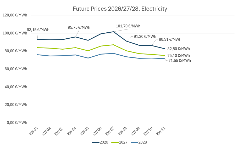 Das Frontjahr 2026 wird aktuell für ca. 3,5 ct/kWh gehandelt.
