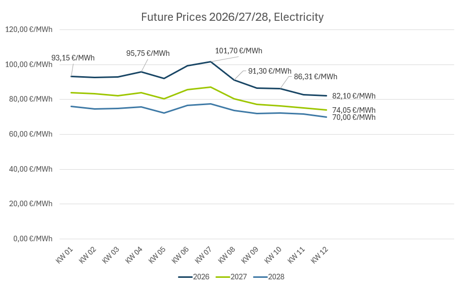 Das Frontjahr 2026 wird aktuell für ca. 3,5 ct/kWh gehandelt.