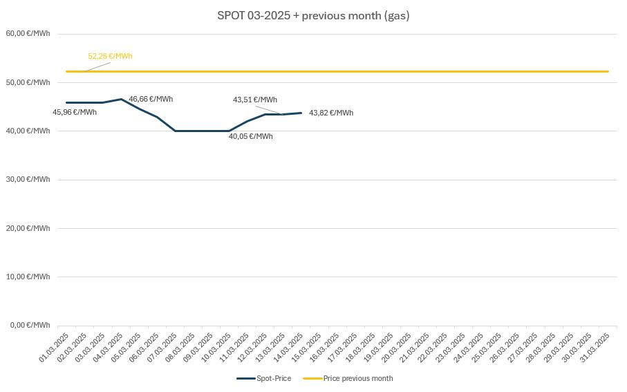 Der März mittelt derzeit bei 10,2 ct/kWh. Der Vormonat Februar wurde mit einem Mittel von 12,8 ct/kWh abgeschlossen