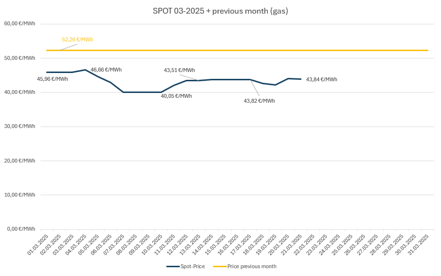 Der März mittelt derzeit bei 4,3 ct/kWh. Der Vormonat Februar wurde mit einem Mittel von 5,2 ct/kWh abgeschlossen