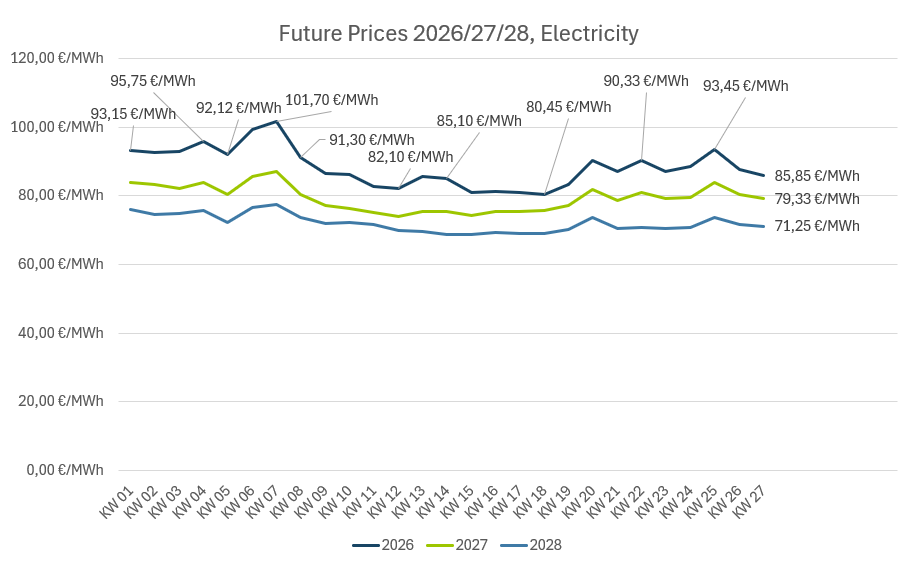 Das Frontjahr 2026 wird aktuell für ca. 3,5 ct/kWh gehandelt.