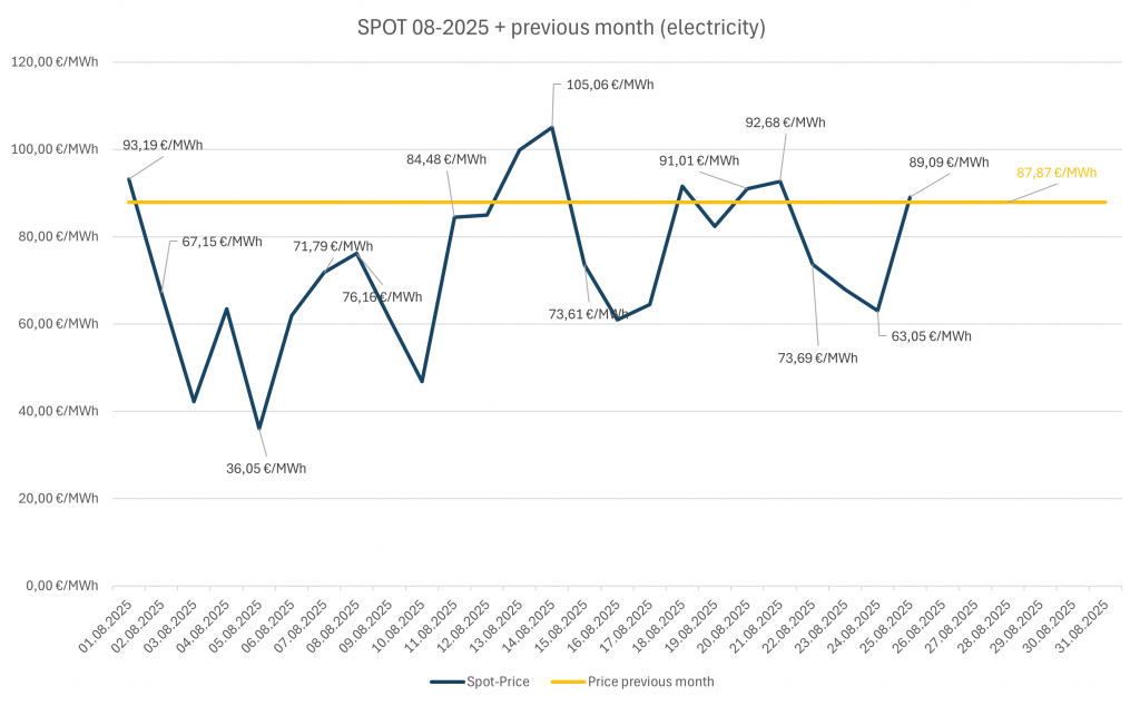 Der Vormonat Juli wurde mit einem Mittel von 8,7 ct/kWh abgeschlossen