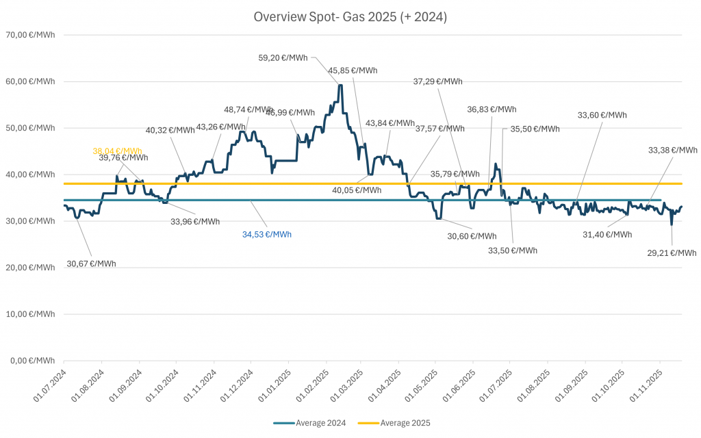 Spotpreis Gesamt 2025 (Gas) inkl. Rückblick