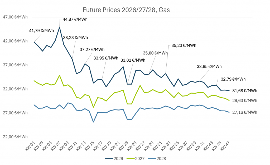 Das Frontjahr 2026 wird aktuell für ca. 3,1 ct/kWh gehandelt.