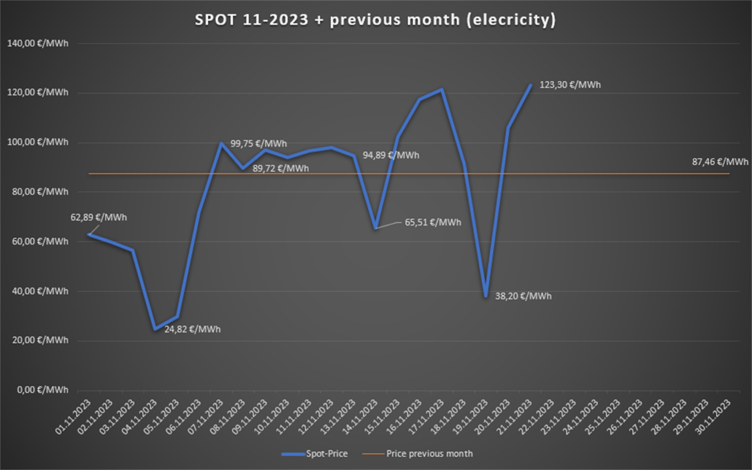 Der November mittelt derzeit bei ca. 8,3 ct/kWh.