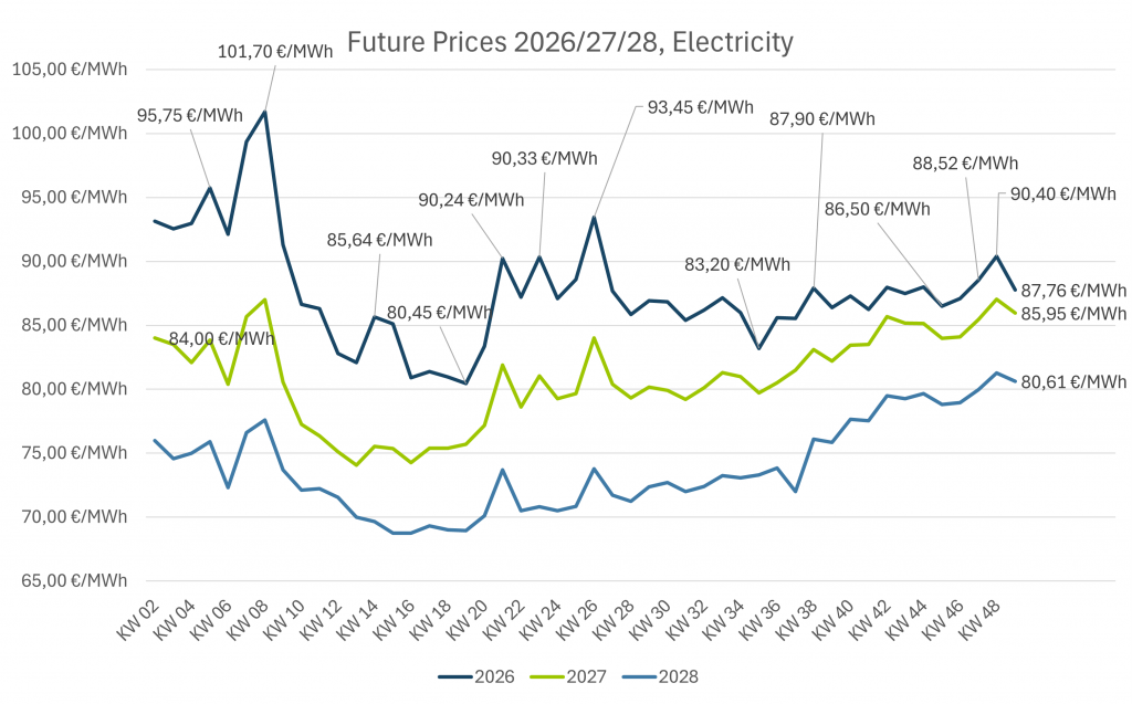Future Strompreise für 2026, 2027 und 2028