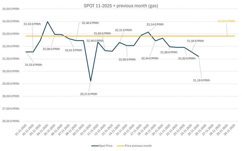 Spotpreis monatlich 2025 (Gas)