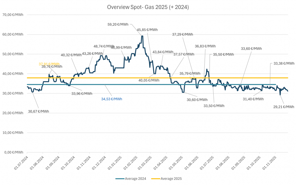 Spotpreis Gesamt 2025 (Gas) inkl. Rückblick