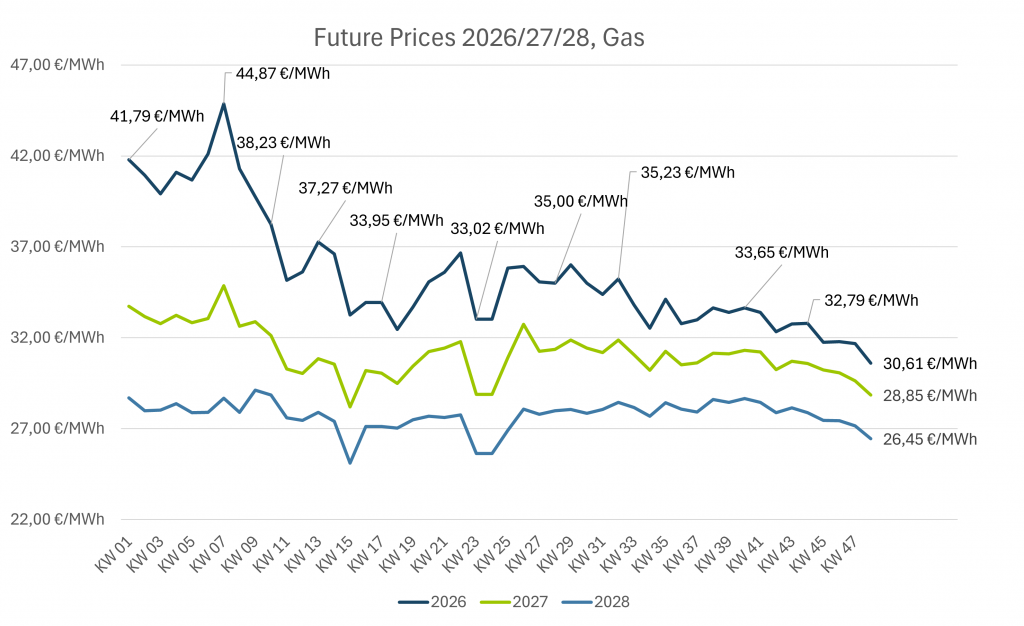 Future Gaspreise für 2026, 2027 und 2028